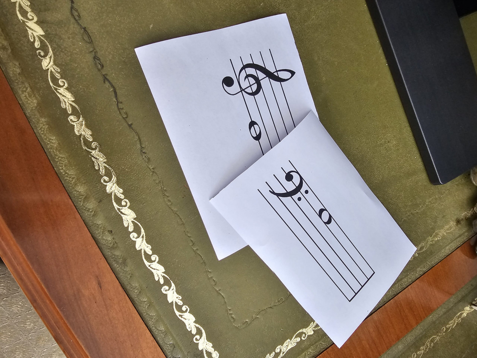 Firstly, she provides students who want a formal understanding with a clear understanding of conventional theory, notation, an explanation of rhythm and timings, and relative keys and scales. Within this element they can study pieces of music or exercises and it leads to a deeper understanding of sequence and flow in music. Students interested in this element can study towards different types of exam and certificate, or they can simply pass through the levels. Different coursebooks may be recommended, depending on the age and level of students.
